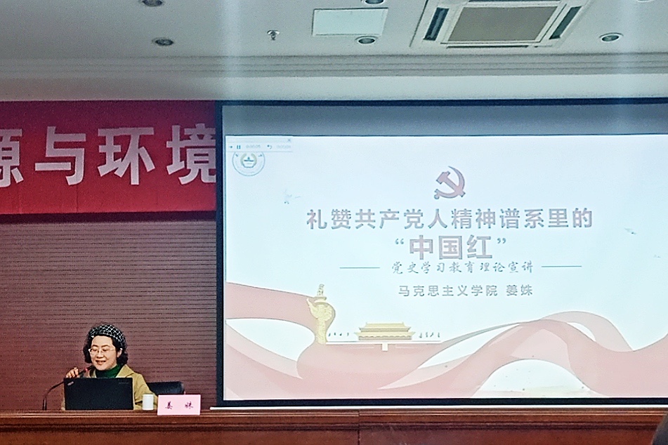 宣讲团成员、马克思主义学院姜姝副教授为资环师生作题为《礼赞共产党人精神谱系里的“中国红”》的党史学习教育宣讲报告。91tv