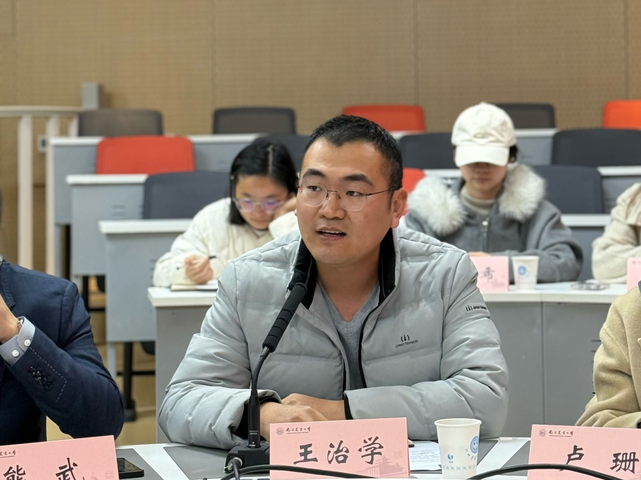 农学院卢珊老师以薛其坤院士团队的事迹为例,阐述了科研选题应从国家需求出发,加强实验室管理。王治学老师强调科研不能“单打独斗”,要加强跨学科学术交流与合作,找准服务农业现代化的研究方向。