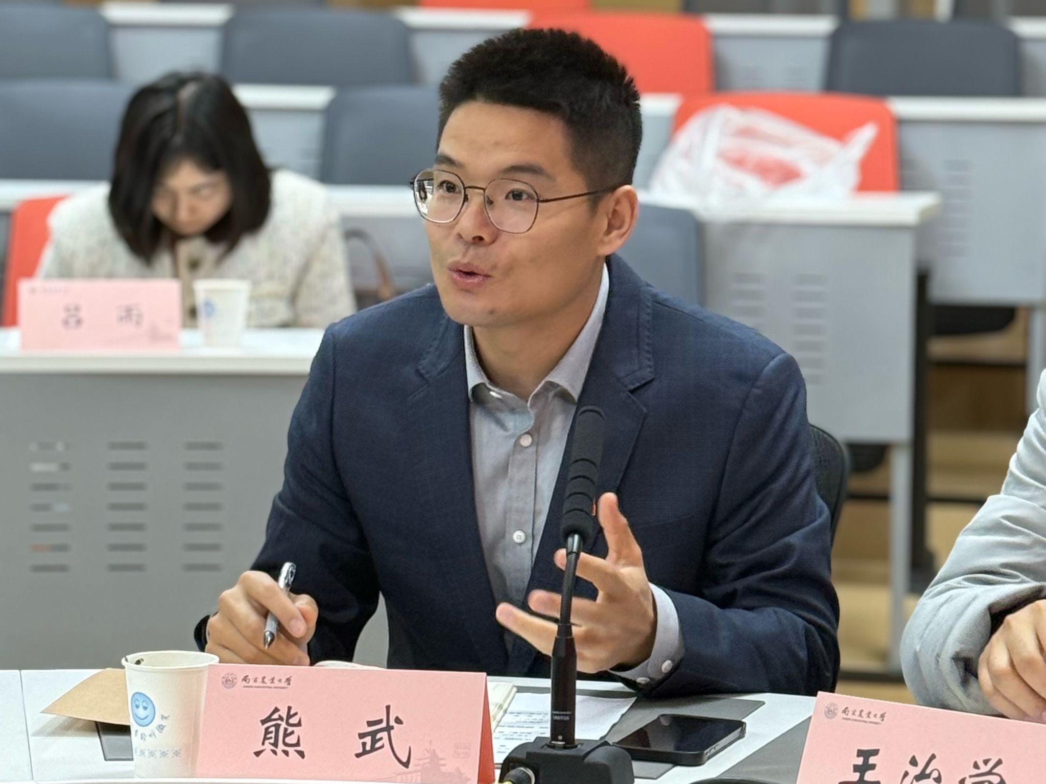 熊武老师分享了学科交叉科研经历,认为多角度审视、把握细节能催生创新突破,指出应用研究应创造切实价值,需积极利用AI等前沿技术。张抒南老师强调基础研究要瞄准科学问题,专业实践须解决实际难题;在人才培养中,要牢记校训、厚植知农爱农情怀,通过学用转化激发学生强国报国的精神风貌。