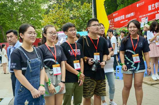 团委学生会的同学们身着统一会服,由各班同学组成的志愿者团队佩戴志愿者工作牌,每一位志愿者的手腕上绑有一根绿丝带,象征资环的热情活力,大家以饱满的热情和有条不紊的节奏迎接2017届新生的到来。