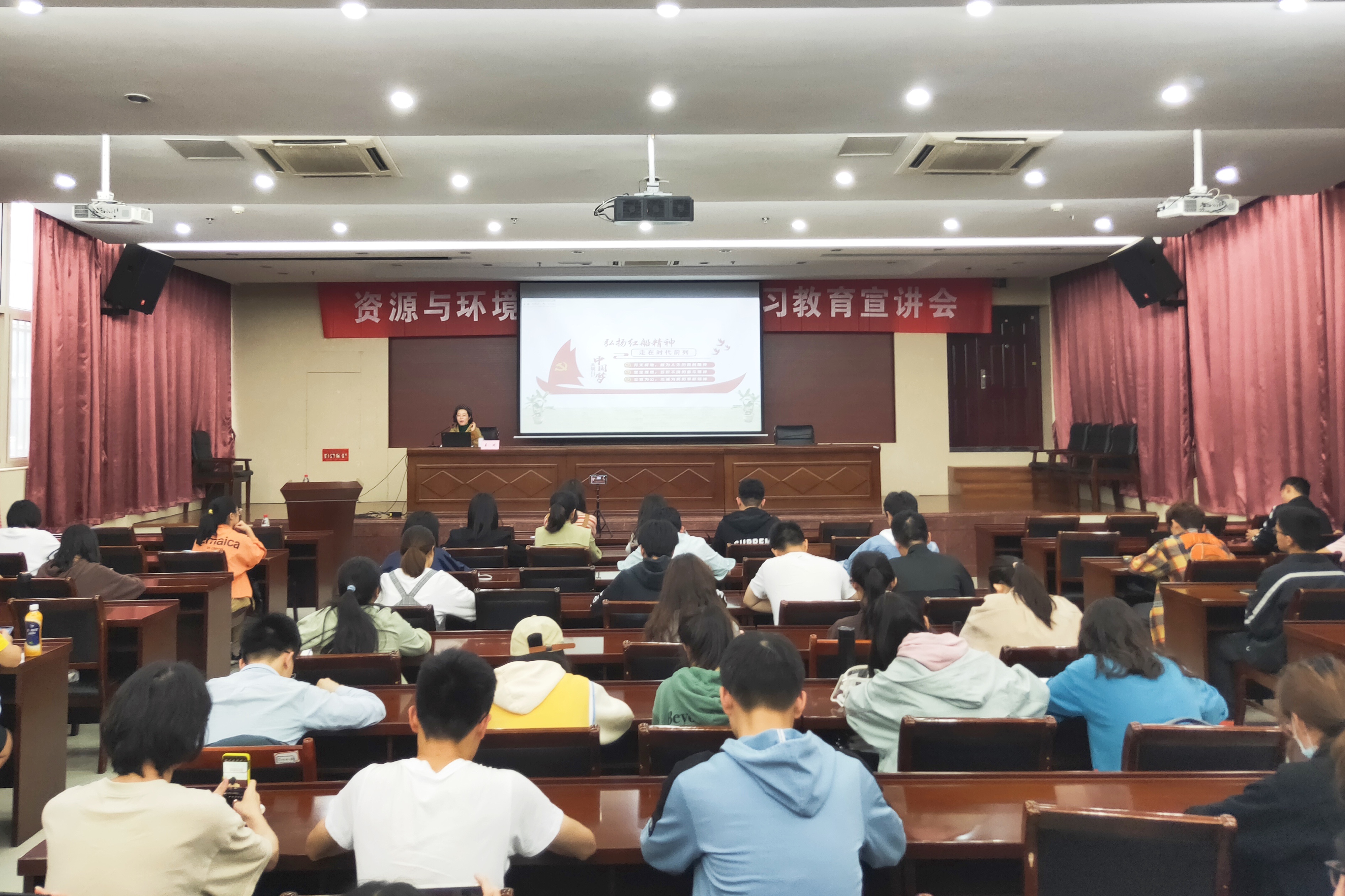 宣讲团成员、马克思主义学院姜姝副教授为资环师生作题为《礼赞共产党人精神谱系里的“中国红”》的党史学习教育宣讲报告。91tv