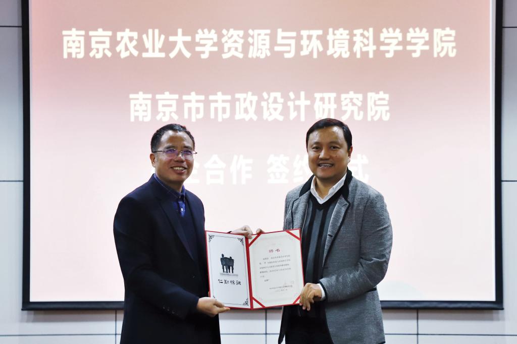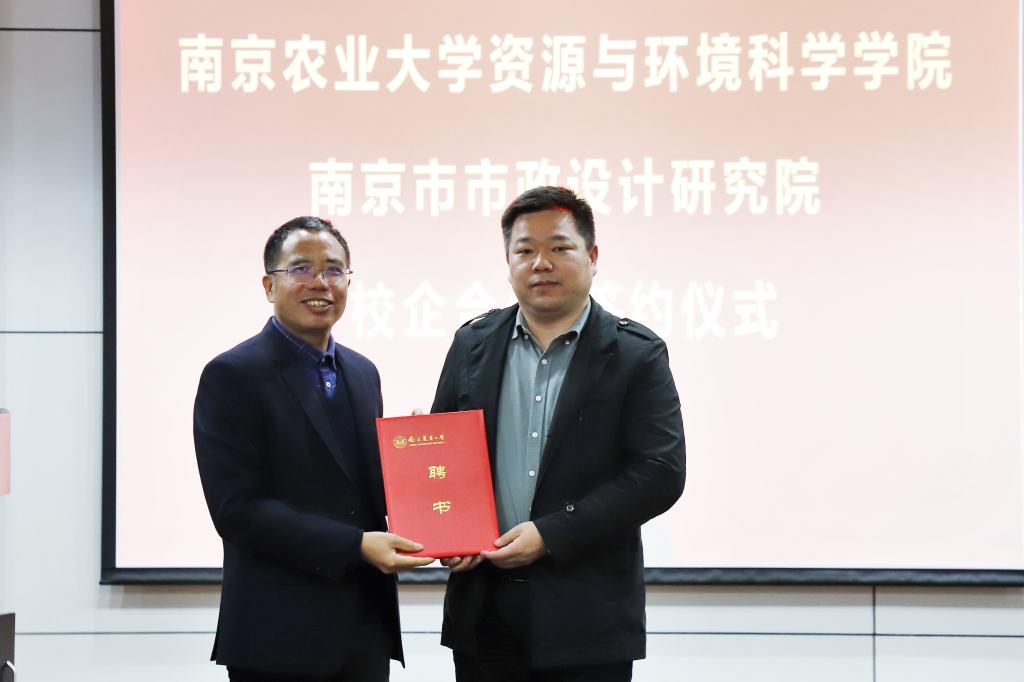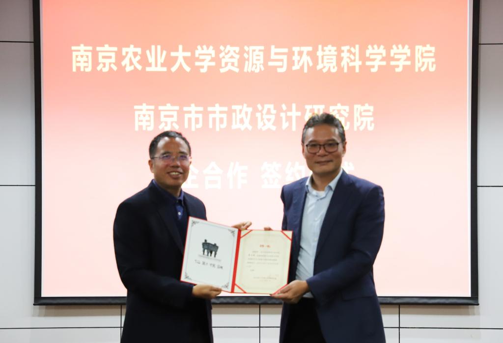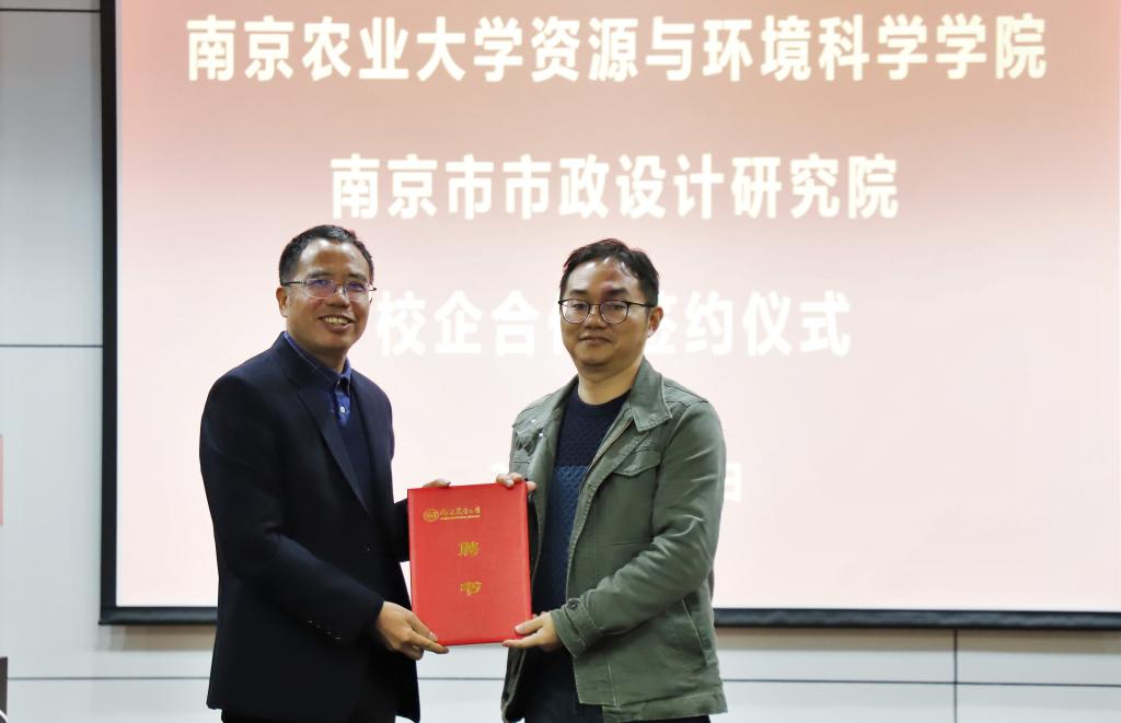 与南京市政院校企合作签约暨实践教学基地揭牌仪式在资环楼举行。学院党委书记全思懋、南京市政院党委书记 总经理夏文林、副总经理兼总工程师王阿华、总经理助理兼产品研究院院长孔宇、设计四院副院长任云、设计四院副总工程师黄敏,学院副院长张旭辉、环境学科负责人周立祥教授等出席仪式,环境工程系主要教师参加仪式,仪式由环境工程系系主任郑冠宇教授主持。