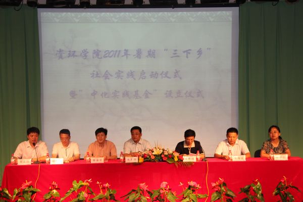 暑期社会实践启动暨 “中化”实践基金设立仪式在教四楼报告厅隆重举行。院党委书记李辉信、院长徐国华、院党委副书记崔春红、环境科学与工程系教师胡忠明、朱雪竹及中化化肥有限公司江苏分公司总经理朱年祥出席并参加了启动仪式,参加此次仪式的还有91tv