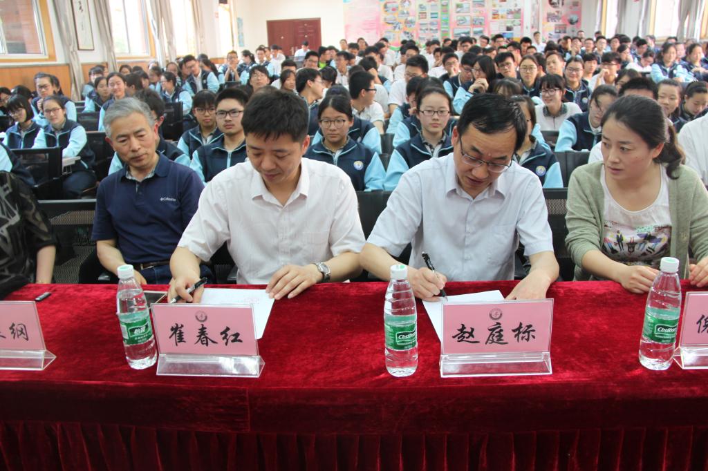 随后,招生宣传组与南京市东山外国语学校签订了优质生源基地共建协议,并进行了授牌仪式,给“东外”师生们赠发了我校的招生宣传材料。