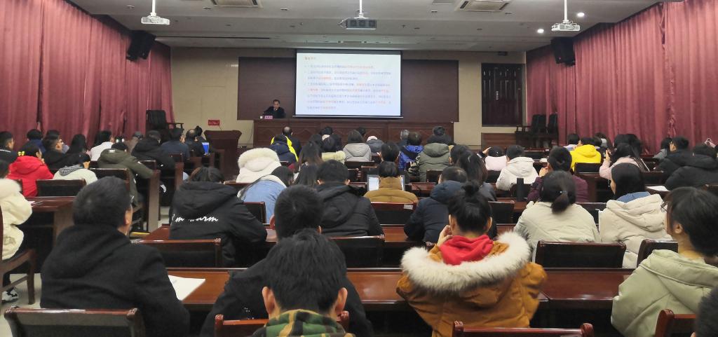 于2019年12月27日邀请校实验室与设备管理处钱德洲处长、校保卫处崔春红处长来院就实验室及校园安全管理与师生进行交流培训,学院分管领导郭世伟副院长出席并主持会议,包括实验室安全管理员在内的近150名师生参加此次交流培训会议。