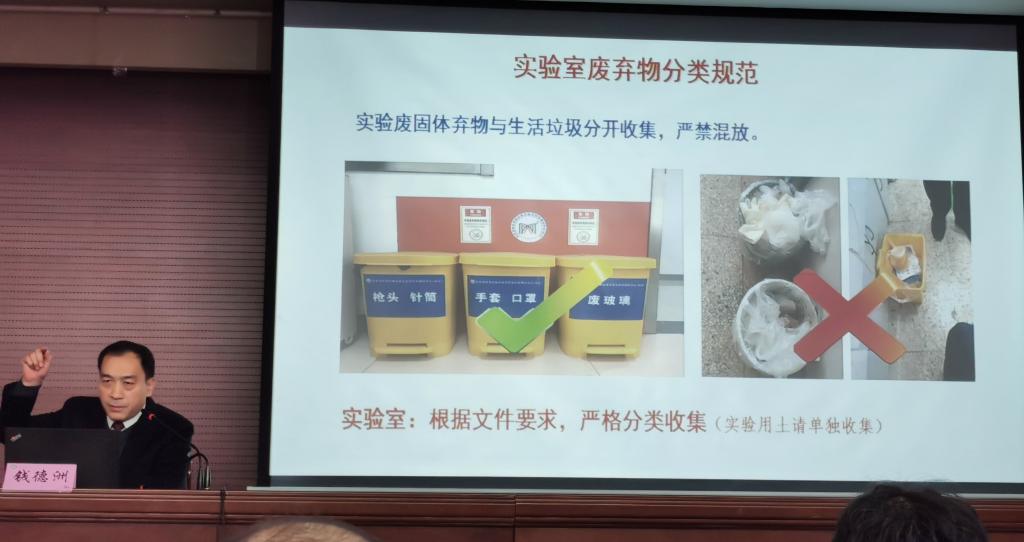 实验室安全管理工作提出建议:在思想上,要提高安全认识,强化安全意识,行动上,要加强安全教育,严把安全准入;强化责任落实,规范安全管理。例如,可以结合研究方向,有针对性的开展安全教育,尤其是对新进教师、研究生,经过培训,才能进入实验室开展工作;实验室安全责任人必须接受安全管理培训,持证。要张贴实验室信息门牌,明确实验室危险源及防护措施、责任人等信息。建立专业特色的安全管理制度(尤其是实验风险评估)等。钱德洲处长指出道路千万条、安全第一条,任何不安全事故都是可以预防的!