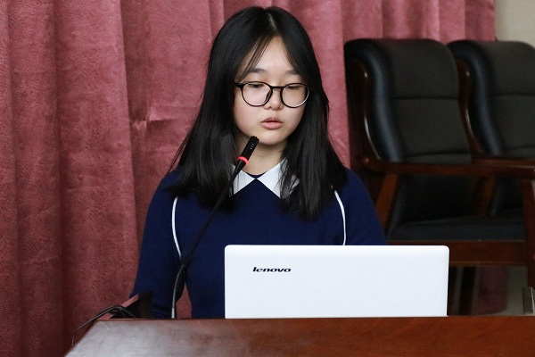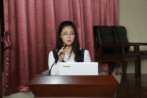 实践部干事王艳妮就参加志愿者活动的方法及注意事项进行了讲解。同时她特别提及了在参加活动过程中大家要秉承着“奉献、友爱、互助、进步”的信念。