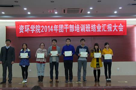 2014年团干部培训班结业汇报大会在资环楼报告厅召开,院党委副书记崔春红、院团委书记万小羽、团委副书记李长钦和院辅导员王未未出席了本次会议。院团委学生会学生干部、各班级班长、团支书共44名学生干部参加了此次汇报大会。会议由学院学生团委副书记赵慧主持。