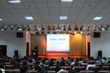 曹教授以"早日成才,前途无限"为题,拉开了此次讲座的序幕。在两个小时的讲座中,曹教授围绕大学生活和个人成长两方面,结合自身经历和当代大学生的特点,深入浅出地阐述了大学生早日成长的必要性和重要性。