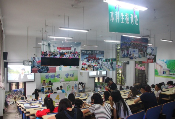 志愿者们从9月3日下午开始装扮迎新教室,迎新教室里挂满了资环学子生活掠影的展板,以期待给新同学展示91tv