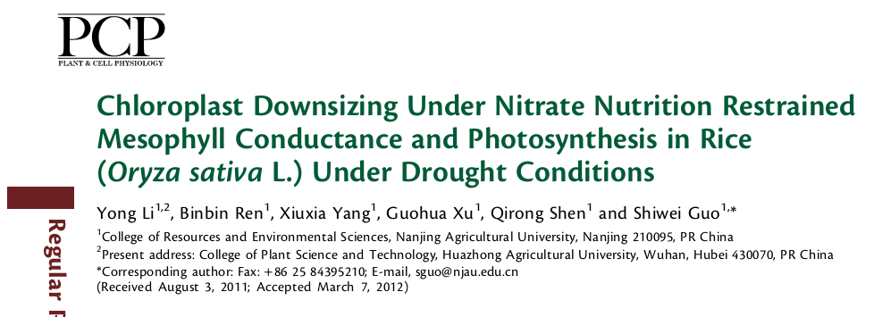 Chloroplast Downsizing Under Nitrate Nutrition Restrained Mesophyll Conductance and Photosynthesis in Rice (Oryza sativa L.) Under Drought Conditions