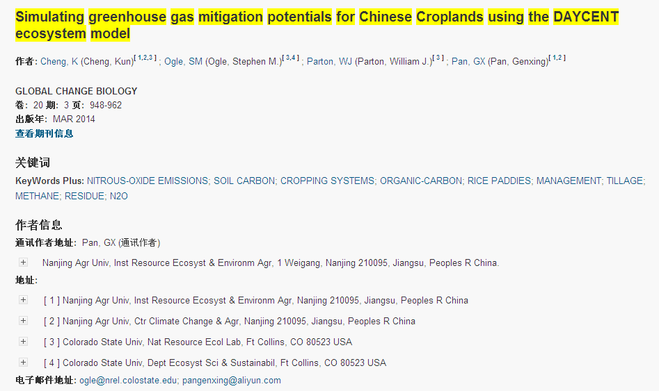 下一篇:Simulating greenhouse gas mitigation potentials for Chinese Croplands using the DAYCENT ecosystem model