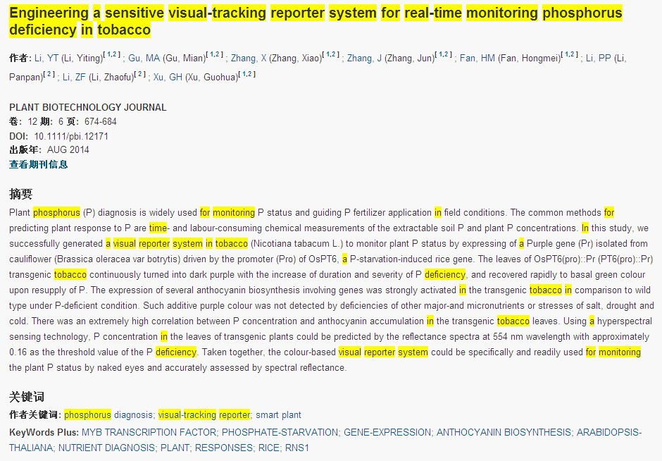 下一篇:Engineering a sensitive visual-tracking reporter system for real-time monitoring phosphorus deficiency in tobacco