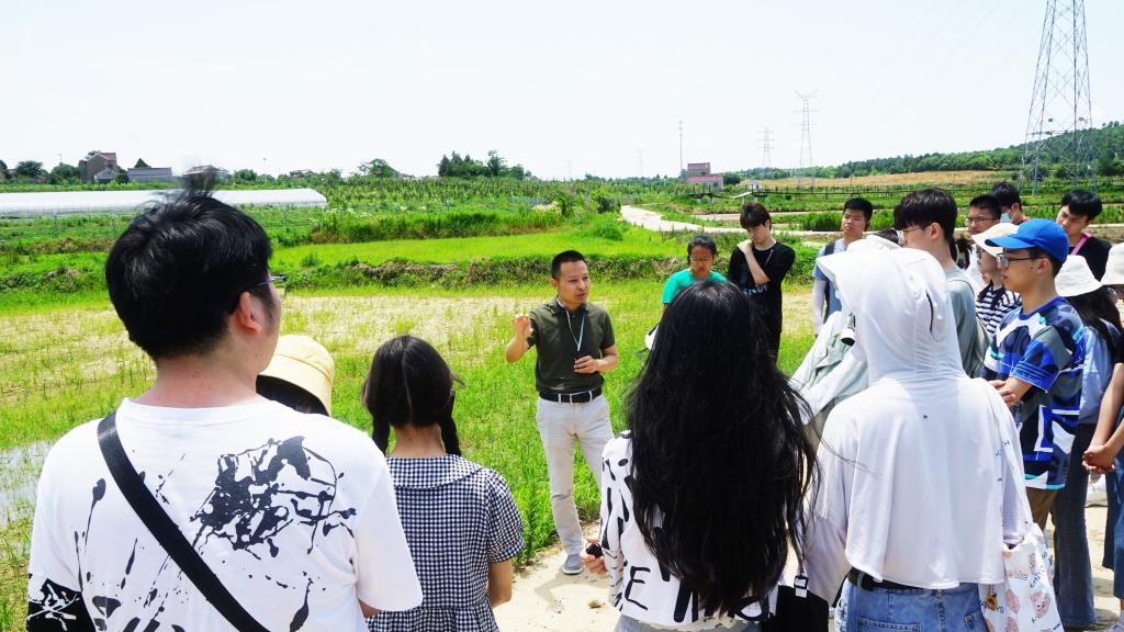 走到水稻田间,副院长郭世伟指着田里一片片绿意盎然的水稻苗说,“作为环境专业的学生,我们不仅学得要有深度,还要有宽度,‘要把饭碗端在自己手里’就必须解决‘卡脖子’的问题——提高土壤耕地质量,提高肥料利用效率,使天更蓝水更清。你们要把学到的知识运用到生产中,把论文写在大地上,这是我们学农业的人对世界和人类发展的贡献”。