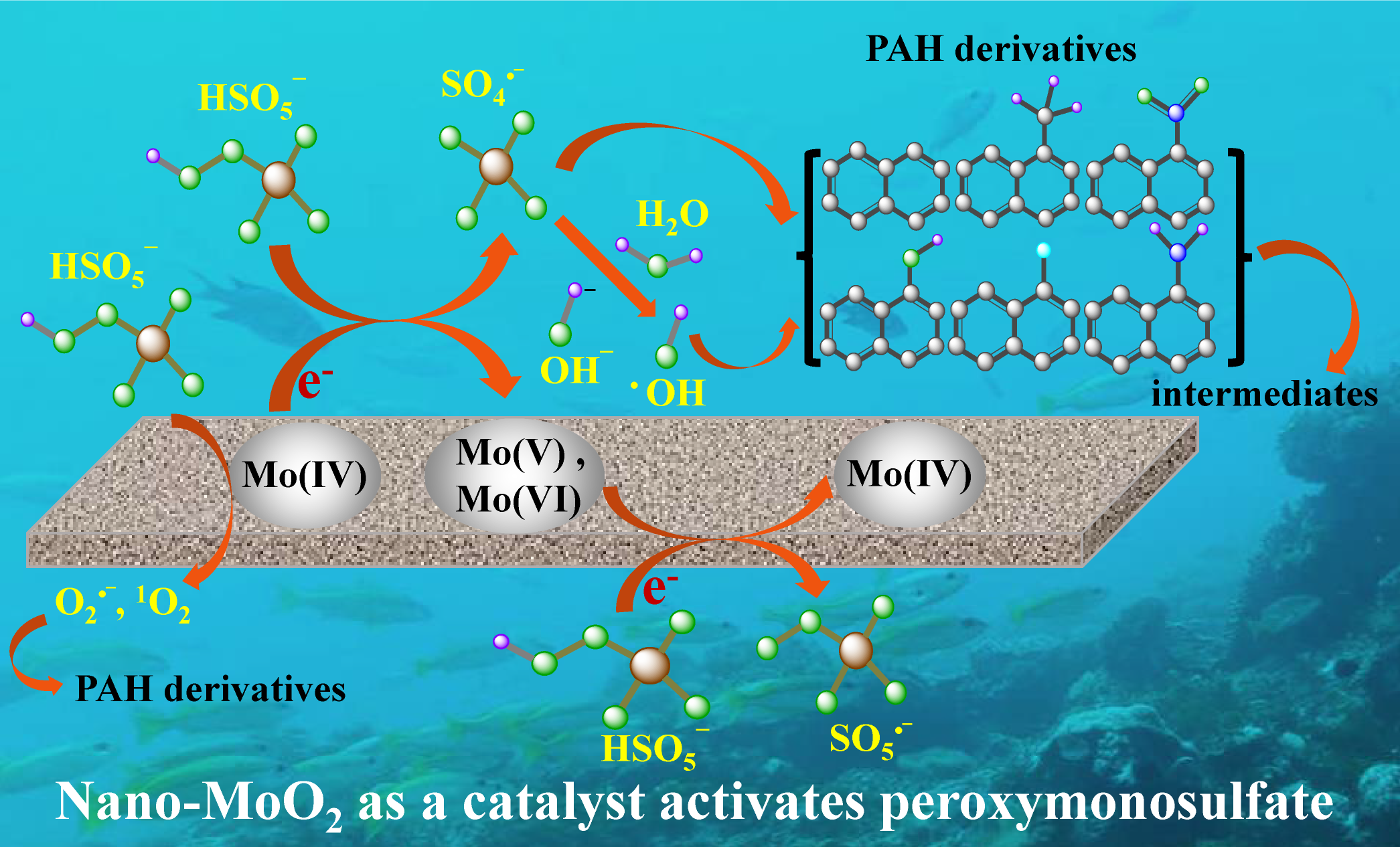 该成果以“Nano-MoO2activates peroxymonosulfate for the degradation of PAH derivatives”为题,发表在Water Research上。该研究得到国家自然科学基金项目(41925029)资助。