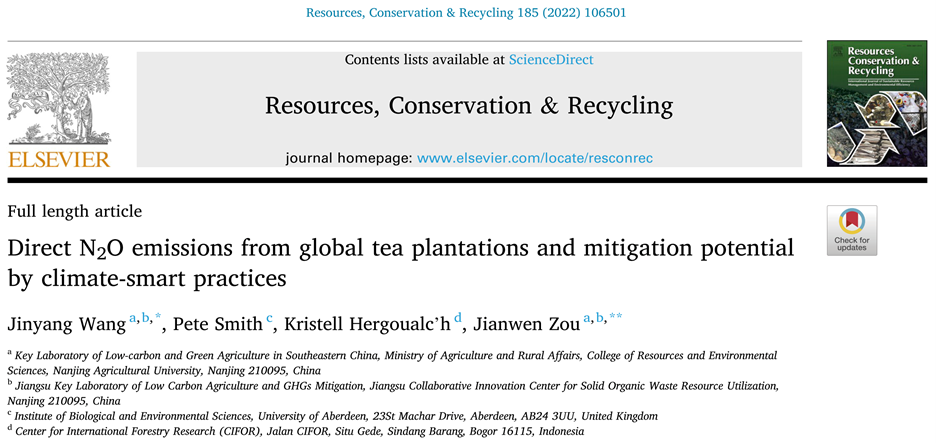 邹建文教授团队在环境科学领域权威期刊Resources, Conservation & Recycling在线发表了题为“Direct N2O emissions from global tea plantations and mitigation potential by climate-smart practices”的研究论文,揭示了全球茶树种植施肥引起的直接N2O排放总量及分布特征,并评估了基于气候智慧型措施的减排潜力。研究结果为准确识别农业部门N2O排放热点提供依据,并为设计农业非CO2排放减排策略提供参考。
