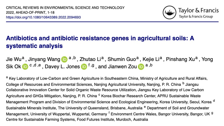 邹建文教授团队在环境科学领域权威期刊Critical Reviews in Environmental Science and Technology发表了题为:“Antibiotics and antibiotic resistance genes in agricultural soils: A systematic analysis”的最新综述成果。该研究揭示了抗生素和ARGs在农田土壤中的分布特征及其关键驱动因子,评价了常见抗生素在农田土壤中的潜在生态风险,并明确了抗生素与ARGs的共存模式以及ARGs农田土壤中的水平转移机制。研究结果加深了我们对农田土壤中抗生素和ARGs污染特征的理解,可为抗生素及其耐药基因的环境生态风险管控提供参考。