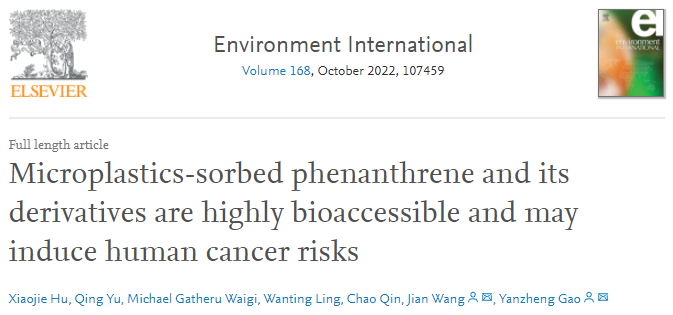 该成果以“Microplastics-sorbed phenanthrene and its derivatives are highly bioaccessible and may induce human cancer risks”为题发表在Environment International期刊。