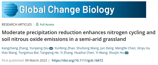 生态系统生态学实验室在全球变化领域顶级期刊《Global Change Biology》上发表了题为“Moderate precipitation reduction enhances nitrogen cycling and soil nitrous oxide emissions in a semi-arid grassland”的研究论文。该实验依托黄土高原野外长期全球变化定位试验站,在半干旱草地生态系统土壤氮循环过程和N2O排放对降水减少的响应机制研究取得重要进展。
