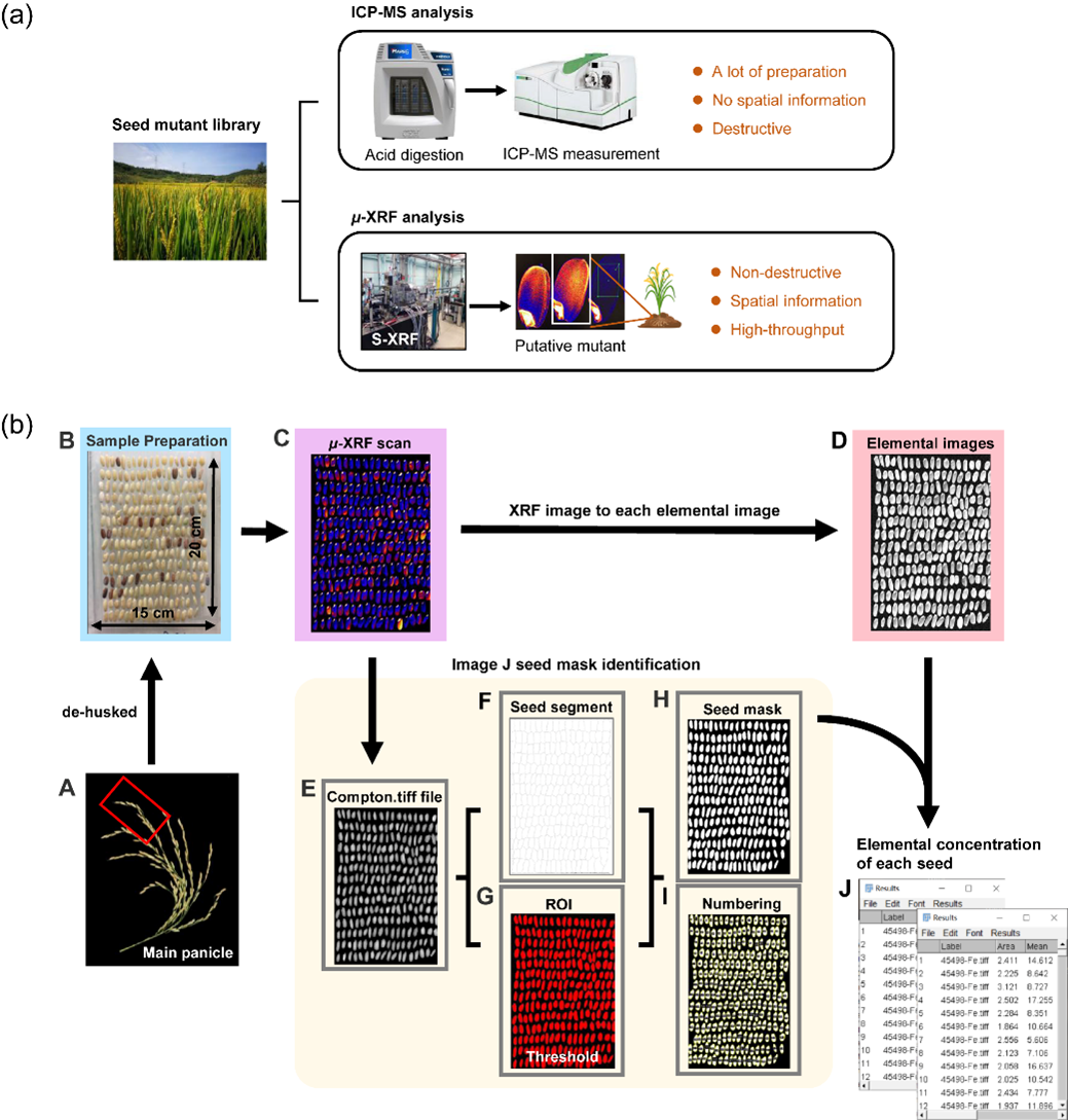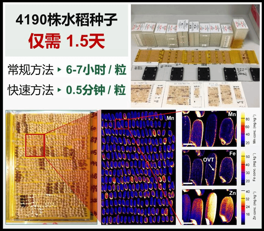 种子中必需矿质营养元素和有毒重金属元素的含量、空间分布和化学形态对人体健康有着重要的影响。为了解析作物元素吸收、转运和储存的分子机制,需要识别元素积累或空间分布的极端种质。然而,当前仍缺少一种能够高通量快速筛选种子突变体库和自然变异群体的方法。