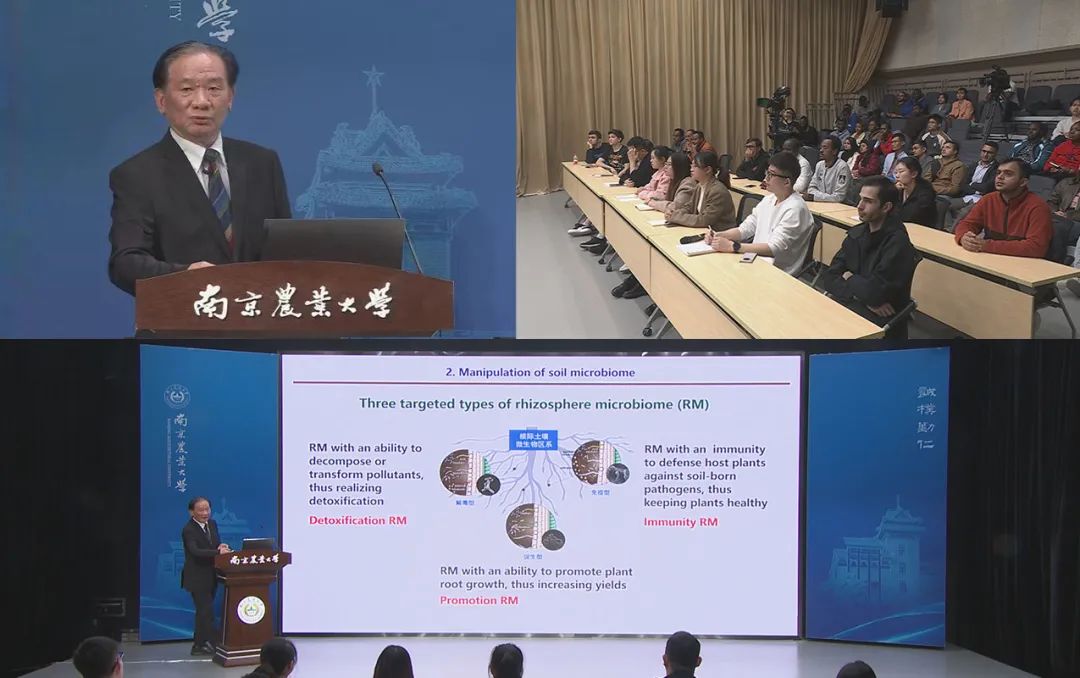 沈其荣院士高度重视师资队伍和课程的国际化及其在国际化人才培养中的重要作用。在学校全面开启农业特色世界一流大学建设的崭新征程之际,沈其荣院士以此次教学比赛为契机,将他的江苏高校省级英文授课精品课程“有机(类)肥料与土壤微生物”带上讲台,用全英文授课的方式深入浅出地为中外学生介绍了他从事四十余年的研究领域,系统地讲解了有机(类)肥料研制与土壤培肥,土壤微生物功能与健康土壤构建等方面的专业知识。